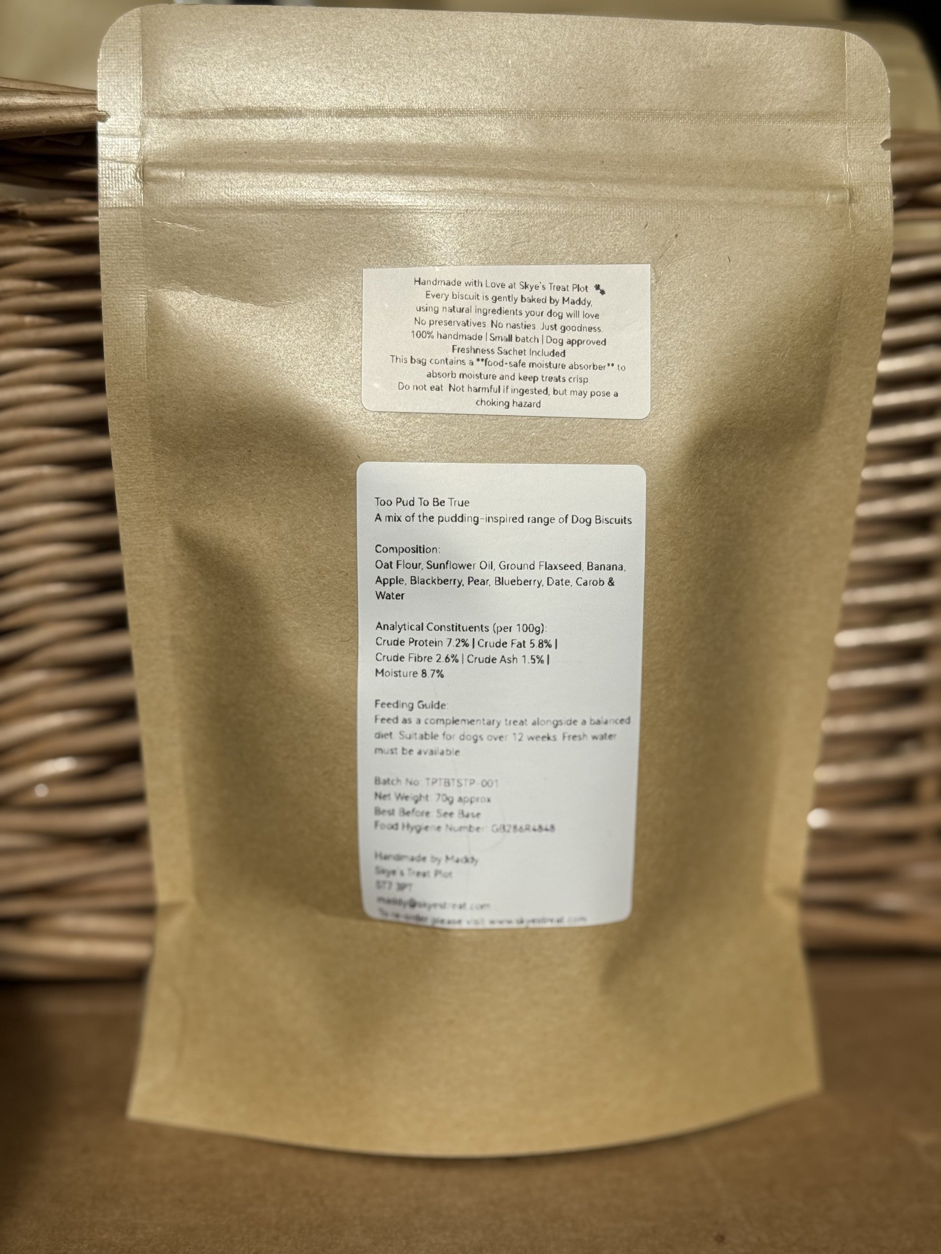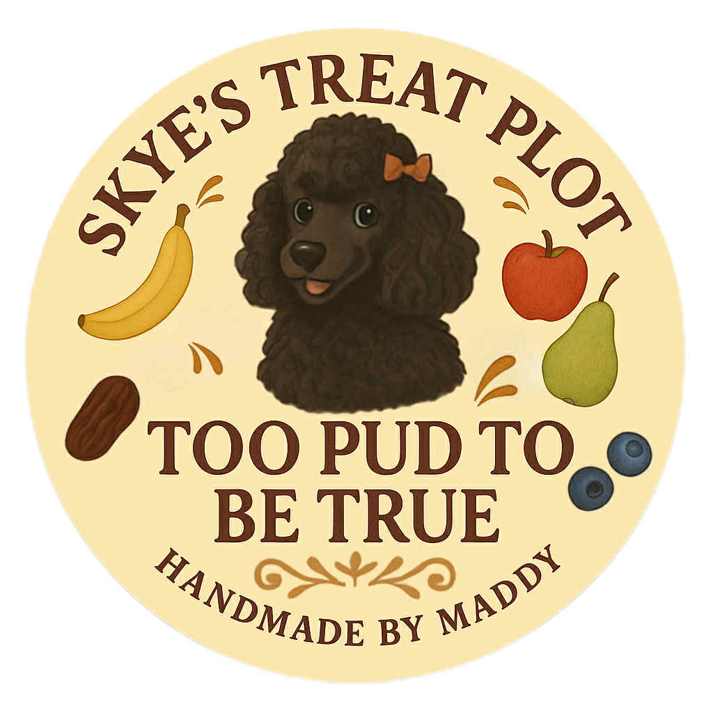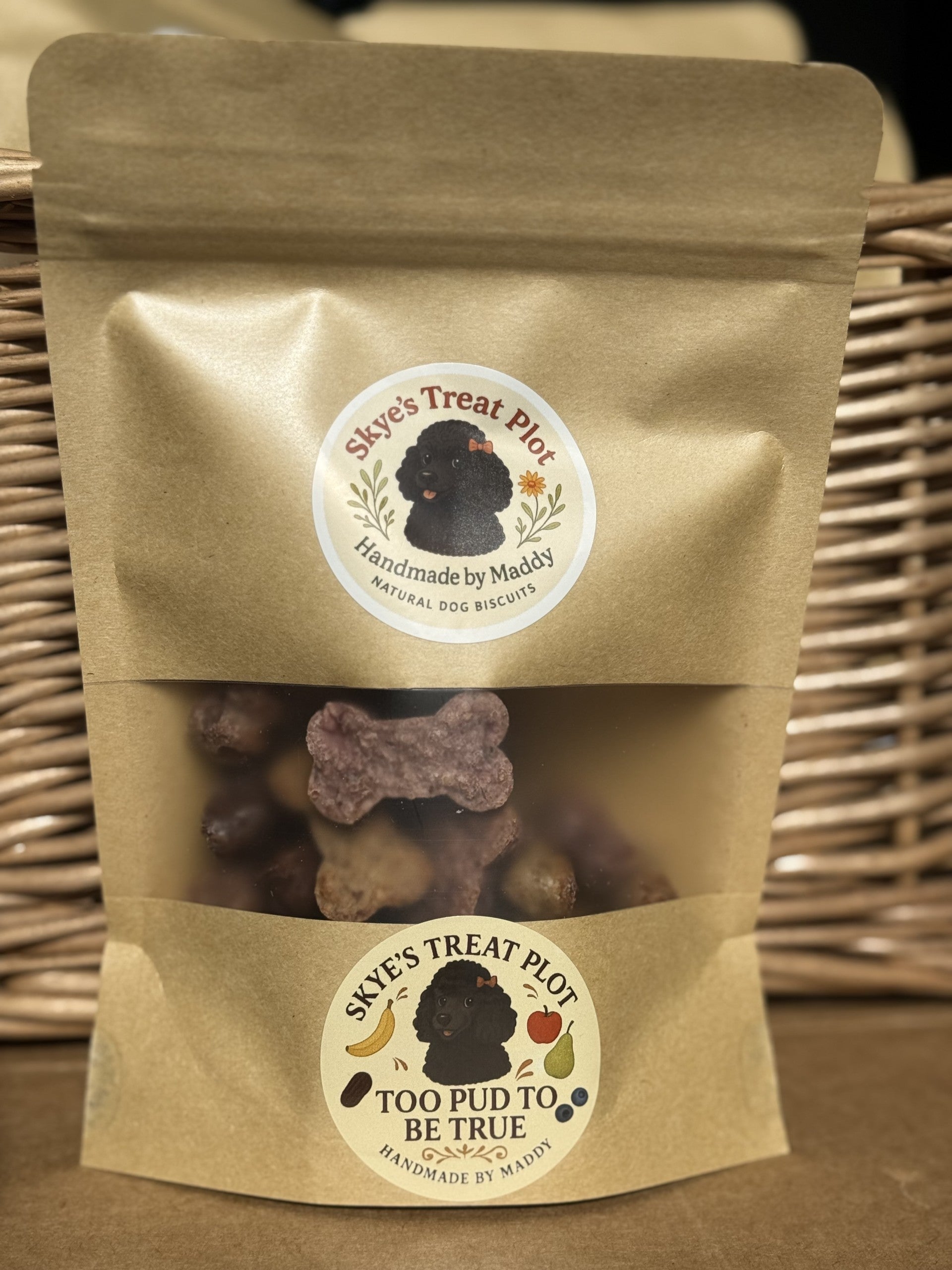 Handmade in small batches at Skye’s Treat Plot – for pups who want the whole pud lot in one bag.